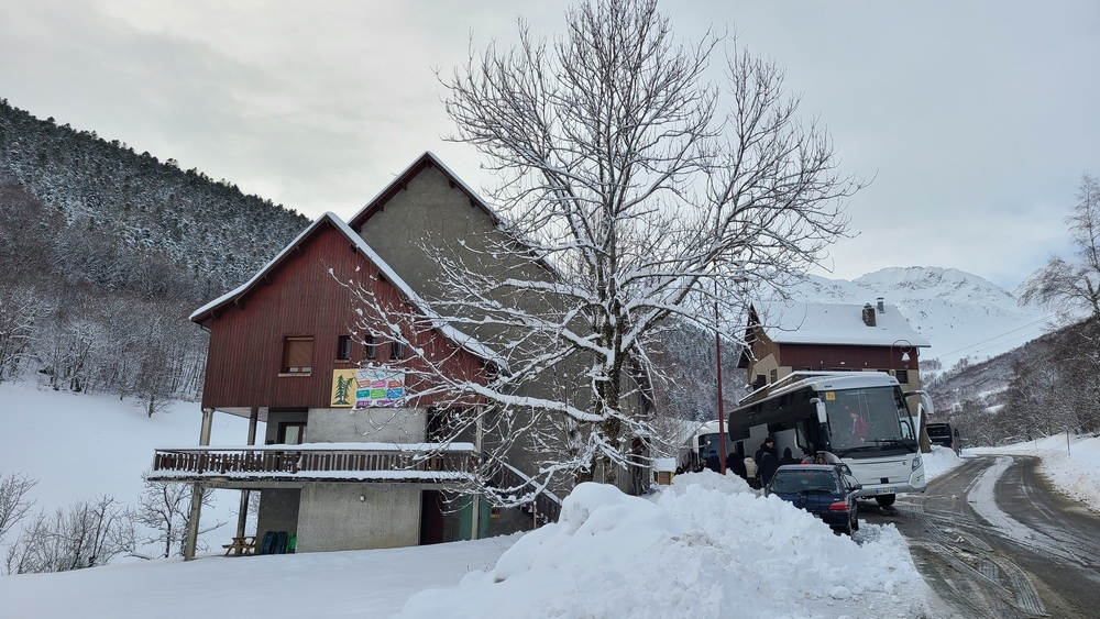Après une nuit où il a neigé en abondance, nous avons pris une navette qui nous a amené à la station de Peyragudes. Après nous être équipé, nous avons commencé les cours avec les moniteurs de l'ESF.